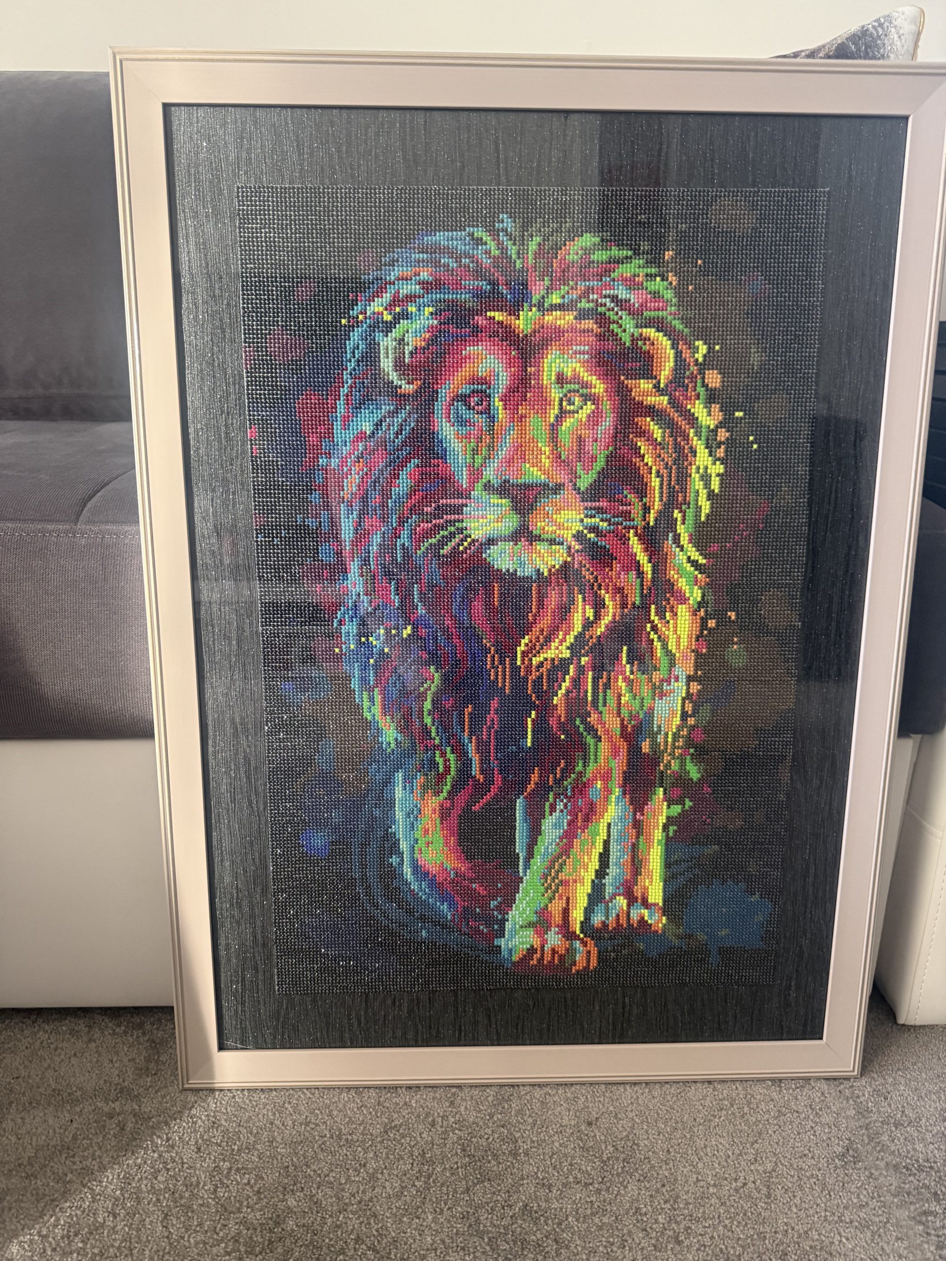 Framed with a light border and white matting, this piece is more than just a craft—it’s a statement of strength, courage, and creativity. Perfect for adding a modern, eye-catching centrepiece to your home or gifting to an art lover who appreciates both elegance and vibrancy.