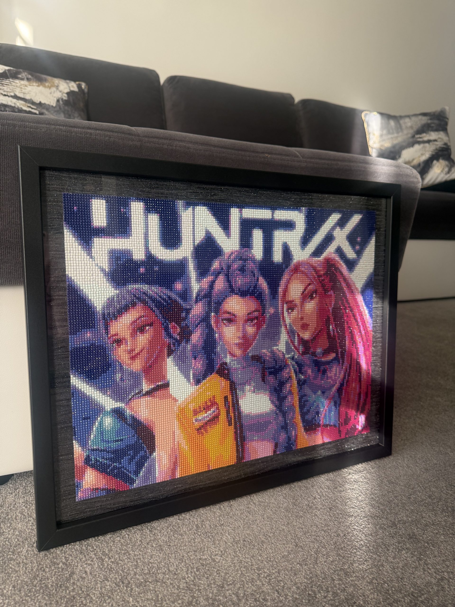 The 40×50 cm format makes it ideal for creative studios or any space where fandom meets design. Framed and ready to hang, this diamond painting is more than decoration — it’s a tribute to the Huntrix vibe and the fans who live it. Perfect for collectors, K-pop enthusiasts and lovers of handmade pop art.