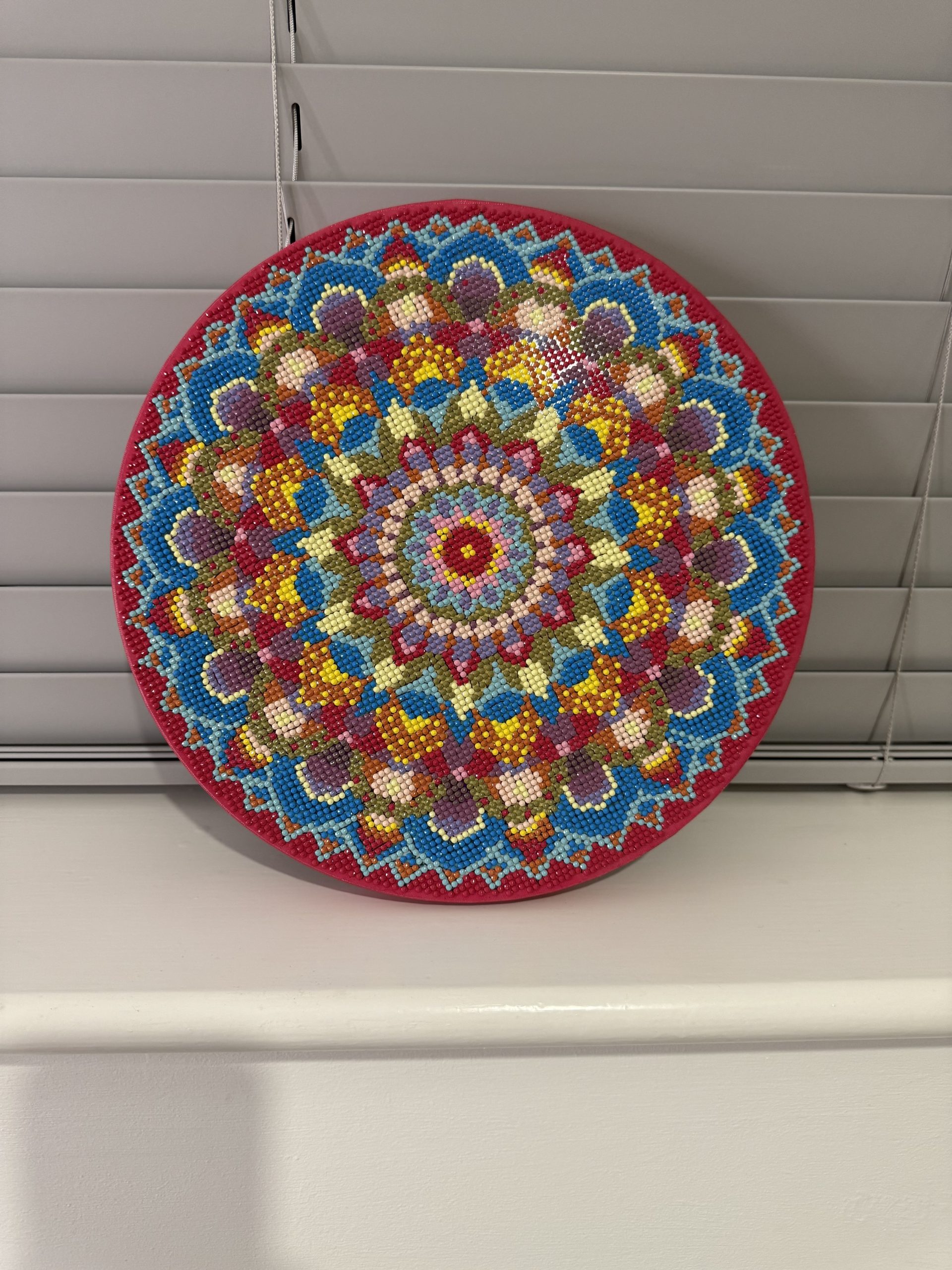 The  price reflects the 25×25 cm circular format, the intricate hand‑placed resin drills and the quality finish. This handmade mandala diamond painting is a unique decorative piece, fully completed and ready to display. Its vibrant colours, precise craftsmanship and sparkling detail make it a premium small‑format artwork designed to bring harmony and elegance to any interior.